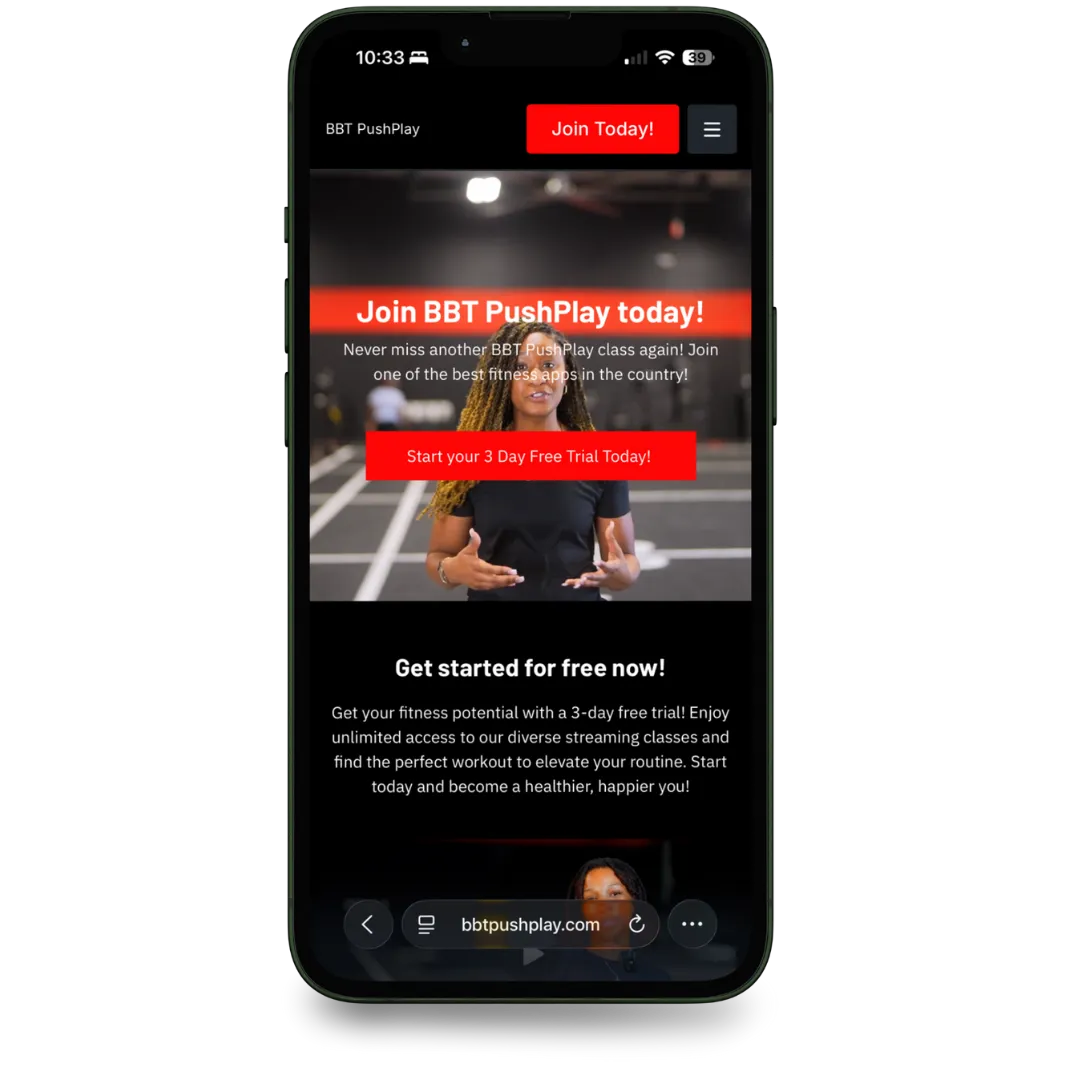 The BBT Fitness App is where you’ll manage your session schedule, check-ins, and facility access.